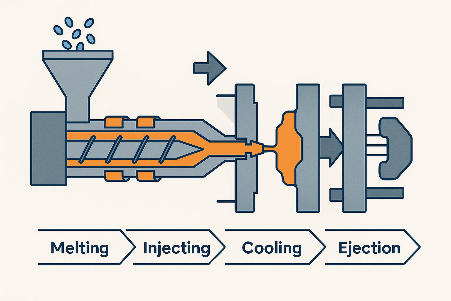 Quá trình đúc phun theo một chuỗi chính xác và theo chu kỳ: