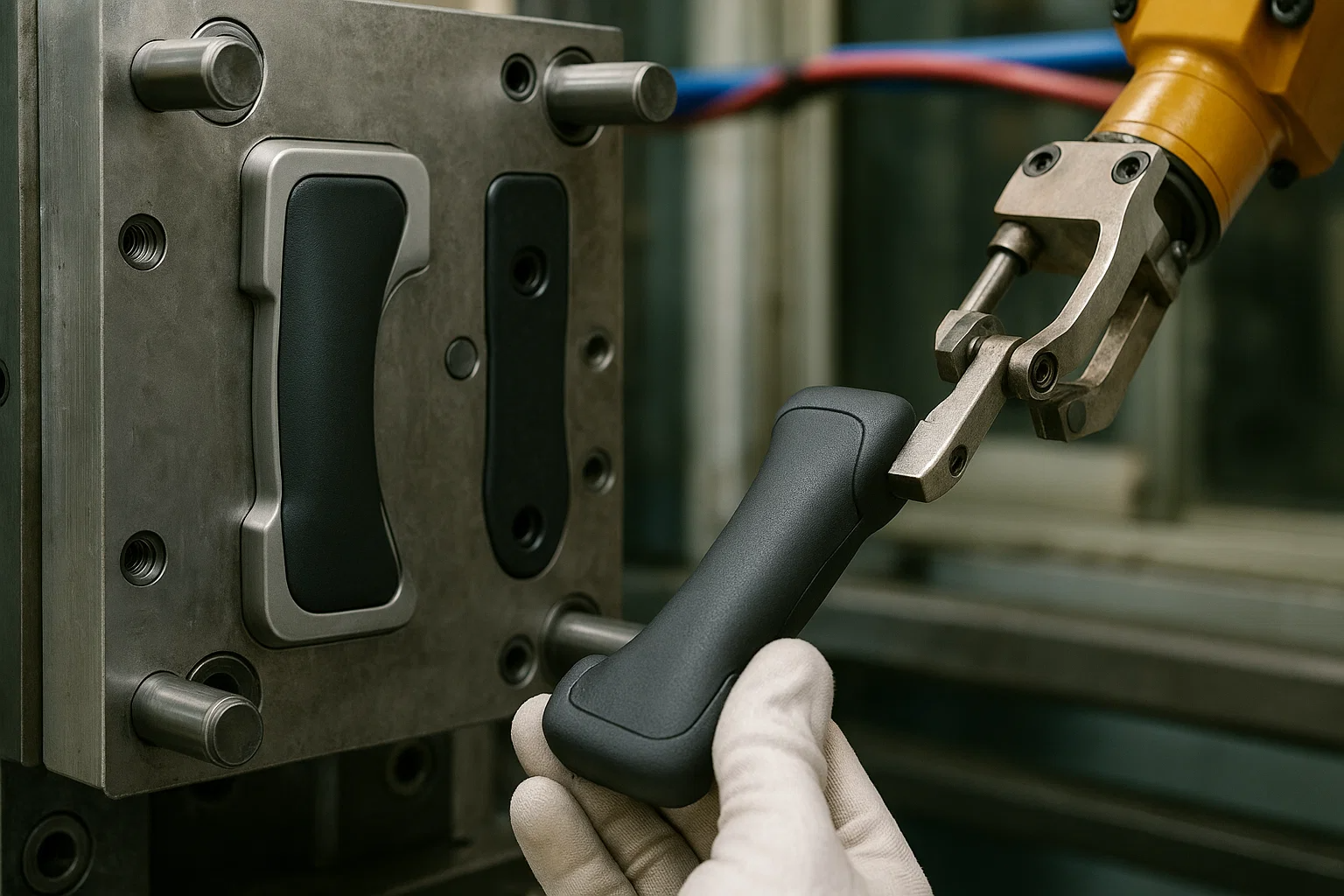 Giải pháp: Nhà sản xuất thực hiện quá mức Sử dụng một quá trình ép phun hai shot. Đầu tiên, cơ thể tay cầm kết cấu được đúc từ nhựa ABS bền, cứng. "Chất nền" cứng này sau đó được xoay trong cùng một máy đúc sang khoang thứ hai. Ở đây, một lưu hóa nhiệt dẻo nhiệt dẻo mềm, đàn hồi (TPV) đã được tiêm trên các khu vực cụ thể của tay cầm ABS, tạo thành một tay cầm thoải mái, không trượt.